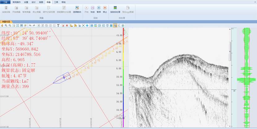 針對專業(yè)用戶使用習慣和需求,廣州南方海洋技術有限公司開發(fā)了“地質大師(Geo-Master)”淺剖采集后處理軟件。該軟件具備淺剖數(shù)據(jù)、RTK位置數(shù)據(jù)、姿態(tài)數(shù)據(jù)等的接入和后處理功能,為航運交通、碼頭港口建設、海洋資源開發(fā)、國防軍事等領域提供基礎數(shù)據(jù)。